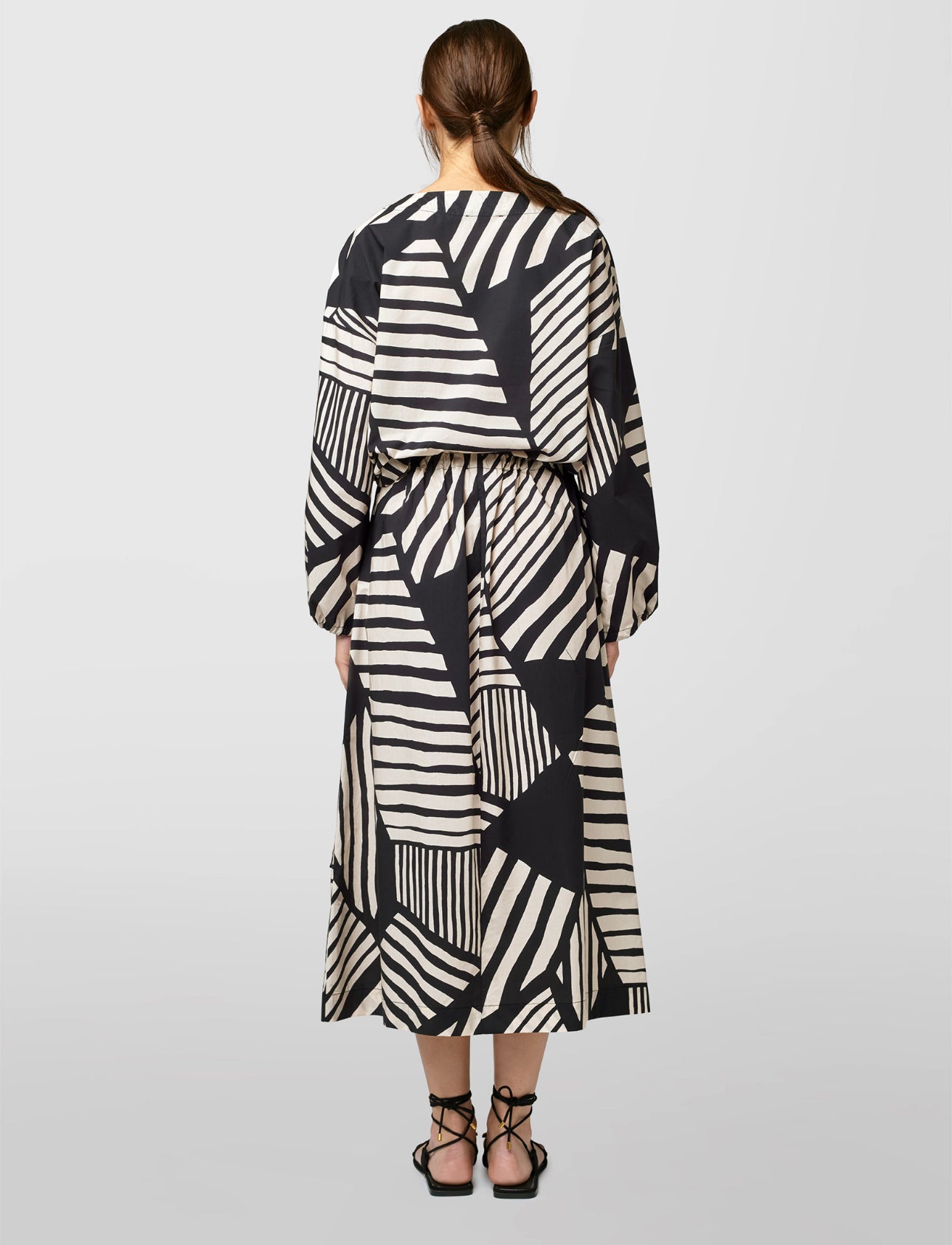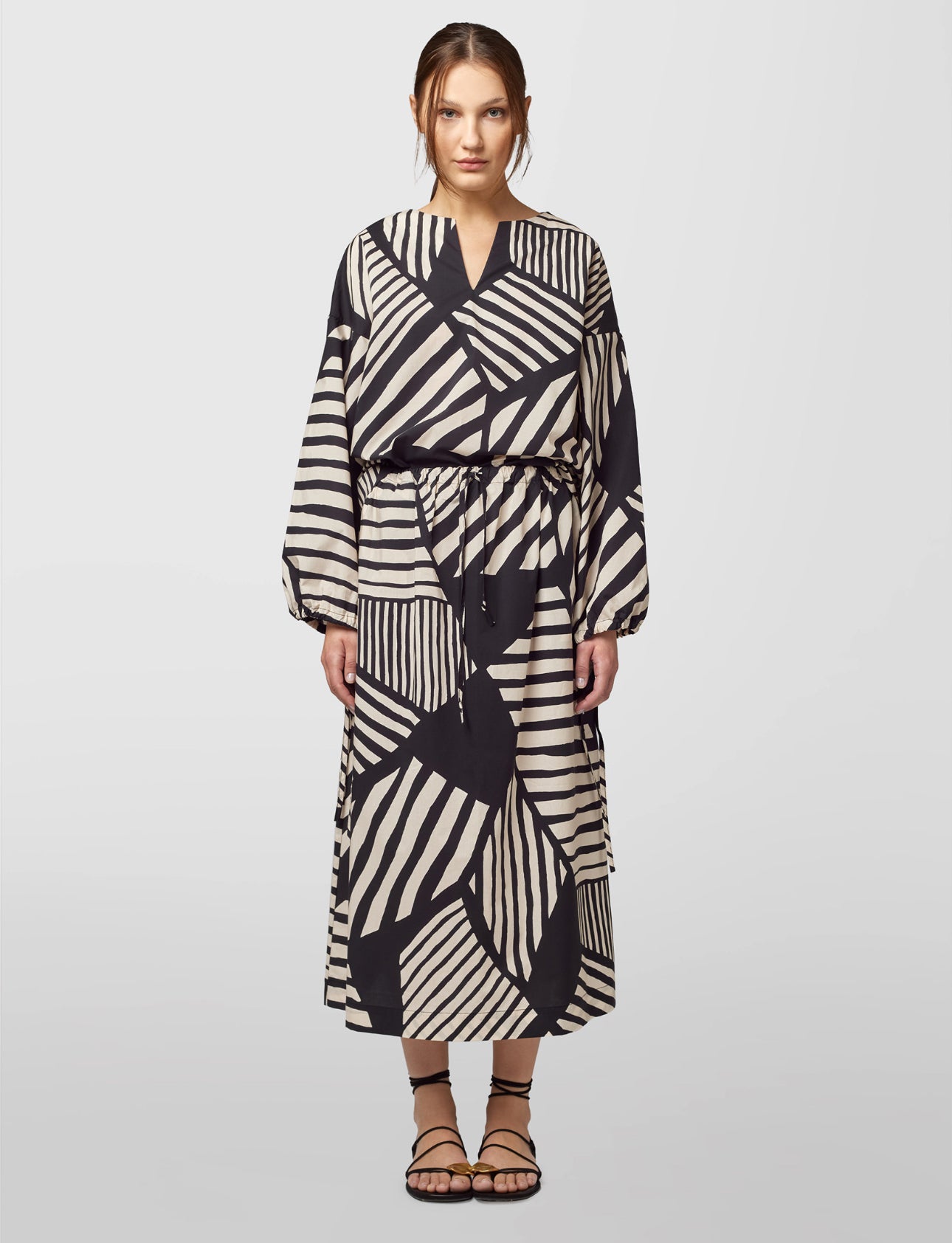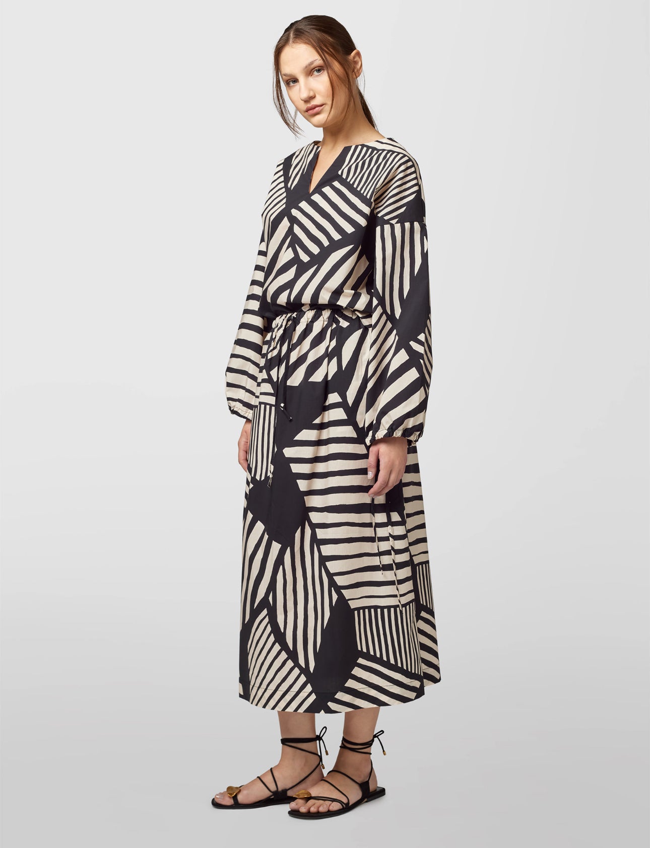 Gonna in tessuto popeline stampato. Maniche . Vita alta regolabile con coulisse. Tasche laterali a filo. Regular fit.